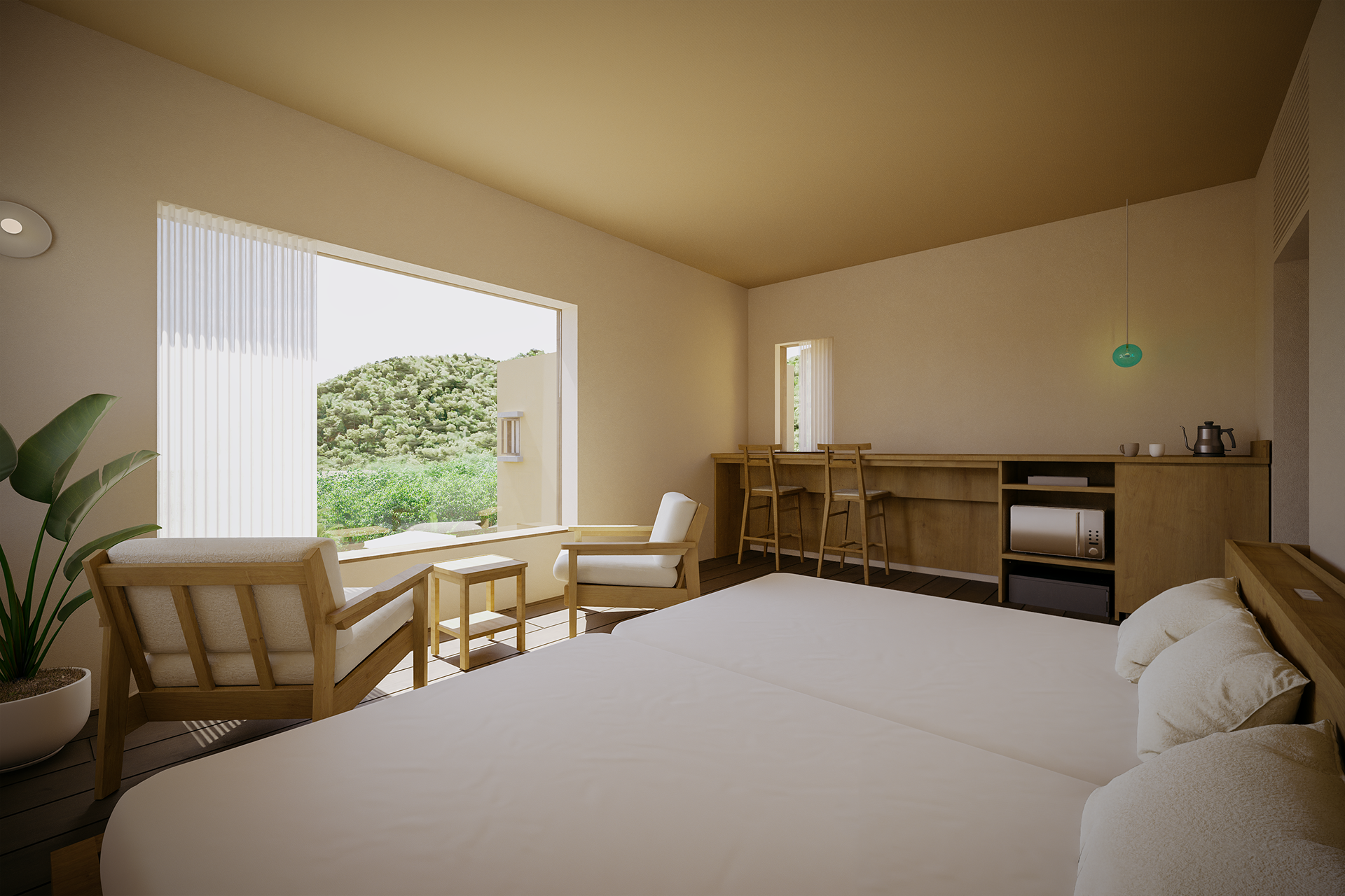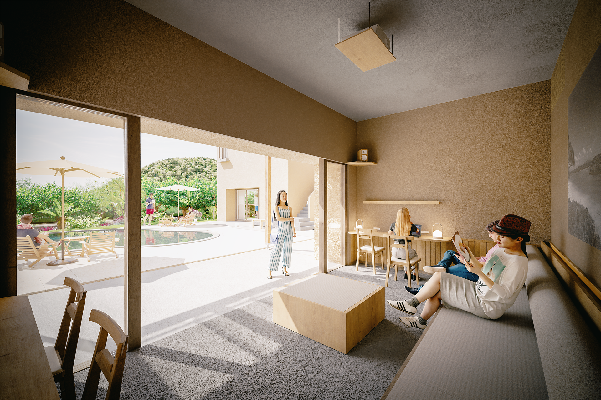 「Semilla」という名前は、villa(邸宅)と village(集落)のあいだにある場所を意味している。過度に閉じることも、過剰につながることもない。その曖昧さを受け入れることで、軽やかで偶発的な関係が育まれる。ここでは、宿泊施設であると同時に、これからの公共空間のあり方を、集落という原初的な形式になぞらえながら、静かに提案している。